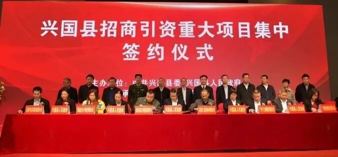 11月17日,江西省赣州市兴国县举行招商引资重大项目集中签约仪式。共签约16个项目,签约资金158.5亿元。